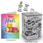 Swad Gift for Happy Holi with Card for party (Swad Digestive Candy 125 Gift Box & 1 Greeting card) – Fast Shipping to USA & Canada