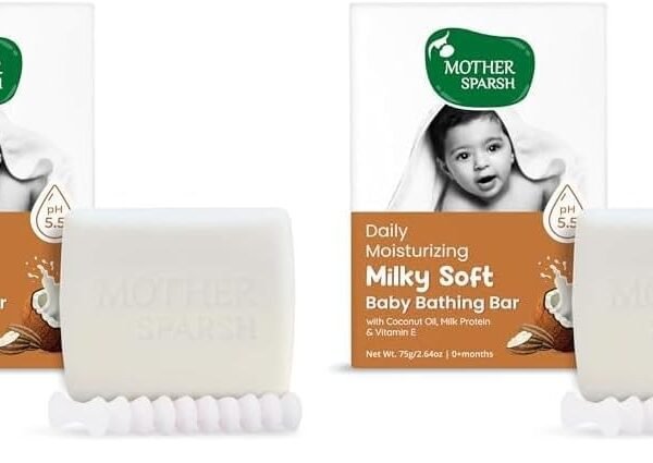 Mother Sparsh Milky Baby Bathing Soap Bar – 75g | Hypoallergenic pH 5.5 | Tear-Free Formulation | Prevents Dryness (Pack of 2) – Fast Shipping to USA & Canada