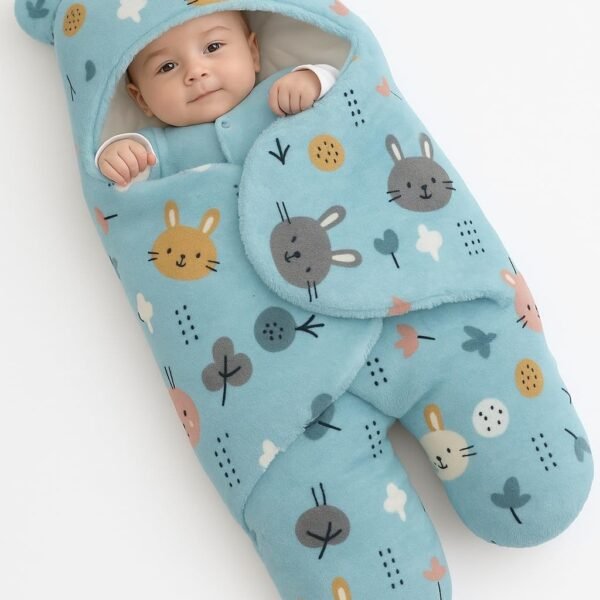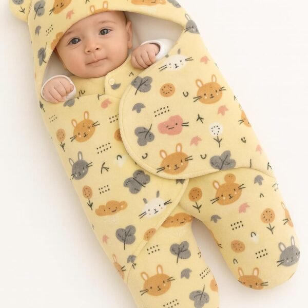 First Kick Baby Blanket New Born Pack of Hooded Printed Swaddle Wrapper Bag Pack of 1, 0-6 Months, L 70 cm x B 70 cm – Fast Shipping to USA & Canada