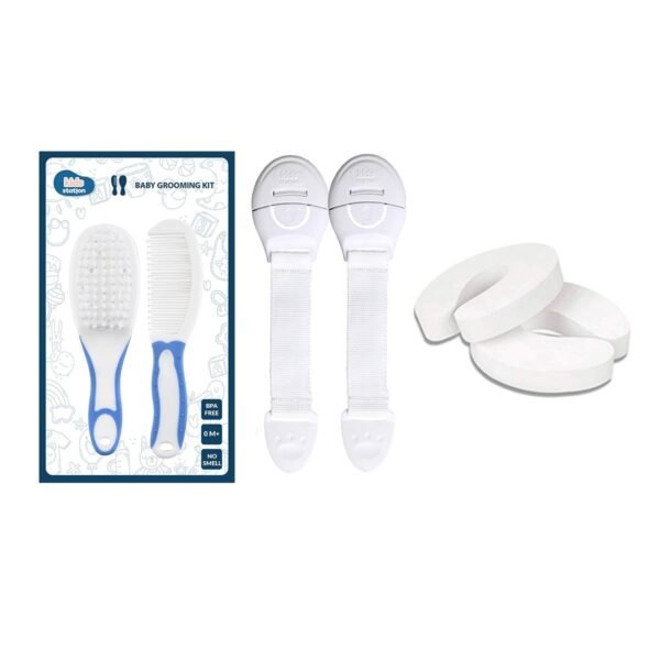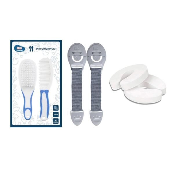 Kids Station Made in India Baby Safety Lock. Baby Proofing Finger Pinch Door Guard and Grooming Kit Combo Pack for Kids, Babies & Pet Safety (Multi, 2 Lock Grey+2 Door Stopper+1 Grooming Kit Blue) – Fast Shipping to USA & Canada