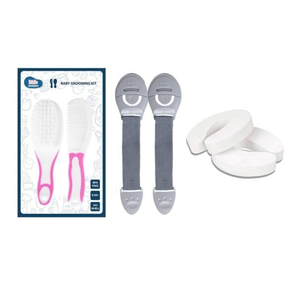 Kids Station Made in India Baby Safety Lock. Baby Proofing Finger Pinch Door Guard and Grooming Kit Combo Pack for Kids, Babies & Pet Safety (Multi, 2 Lock Grey+2 Door Stopper+1 Grooming Kit Pink) – Fast Shipping to USA & Canada