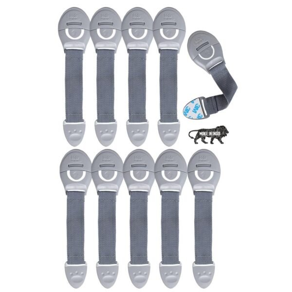Kids Station Furniture Safety Locks For Baby Safety – Strong And Adhesive Child / Toddler / Infants Safety Locks For Drawers,Cabinets,Fridge And Cupboard – Baby Proofing Product -Pack Of 10 (Grey) – Fast Shipping to USA & Canada