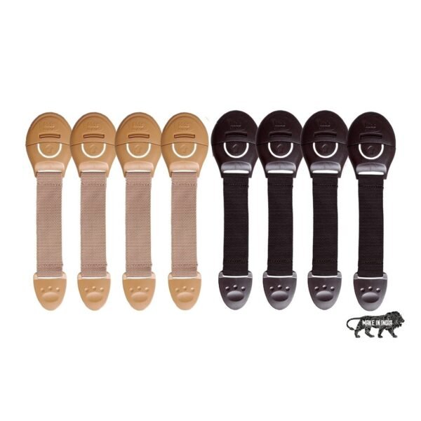 Kids Station Furniture Safety Locks for Kids, Pack of 4 Brown + 4 Beige, Made in India Child Safety, Locks for Drawers, Cabinets, Fridge, Cupboard Lock, Strong and Adhesive Safety Locks – Fast Shipping to USA & Canada