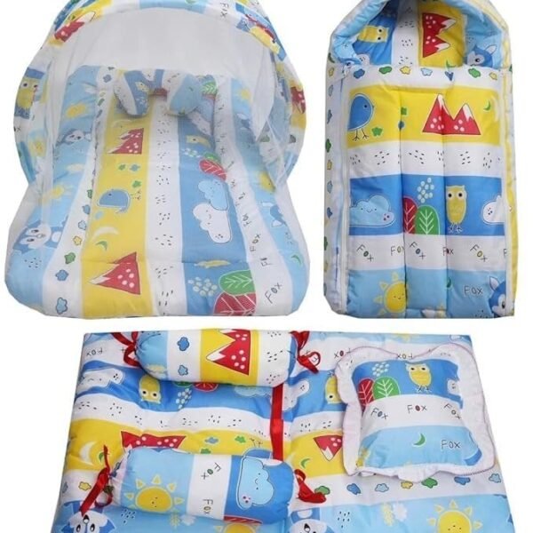 Infantbond Combo Baby Bed with Net & 4 Pcs Bedding Set (Blue Fox) ? Fast Shipping to USA & Canada