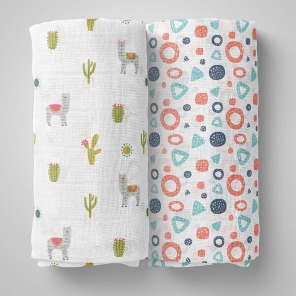1ST STEP Muslin Swaddle 60cm*75cm (Pack of 2) Lama, Donuts – Fast Shipping to USA & Canada