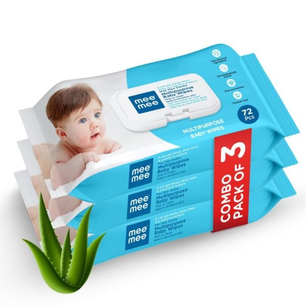 Mee Mee Baby Wet Wipes (72 wipes, Pack of 3) with Aloe Vera extract and Fliptop Lid | Cleansing Wipes Combo – Fast Shipping to USA & Canada