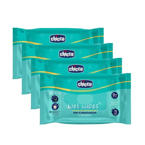 Chicco Soft Cleansing Wet Baby Wipes, Ideal for Nappy, Face and Hand, Dermatologically Tested, Paraben Free, Sticker Pack of 4 (72 Sheets per Pack) 288 pcs – Fast Shipping to USA & Canada