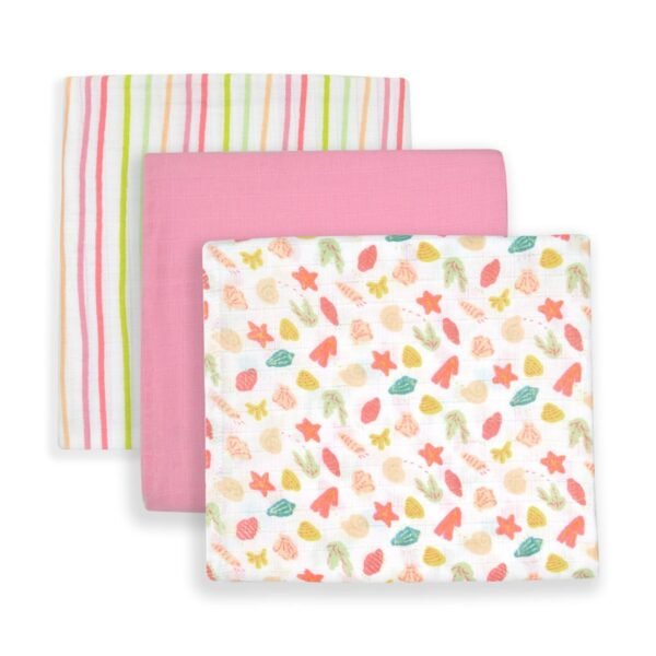 TIDY SLEEP 100% Cotton New Born Baby Muslin Swaddle Wrapper | Newborn Little Finder Soft Blanket for 0-6 Months |Pack of 3|100 cm x 100 cm (Shell-Pink-Pink Strip) – Fast Shipping to USA & Canada