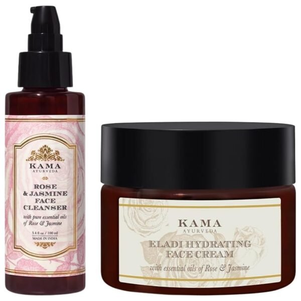 Kama Ayurveda Rose and Jasmine Face Cleanser with the Pure Essential Oils of Rose and Jasmine, 100ml & Kama Ayurveda Eladi Hydrating Face Cream 25Gm – Fast Shipping to USA & Canada