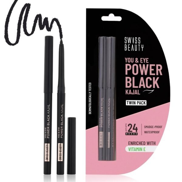Swiss Beauty You & Eye Power Black Kajal Twin Pack | 24 Hrs Stay | Smudge proof | Waterproof | Creamy Texture | Pack of 2, 0.60g – Fast Shipping to USA & Canada
