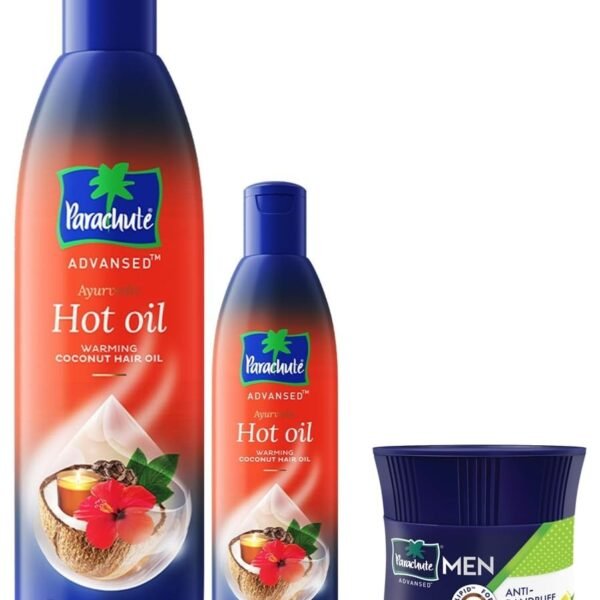 Parachute Advansed Ayurvedic Hot Oil, Warming Coconut Hair Oil, 400 ml + 90 ml & Parachute Hair Cream for Men, 100ml |Anti Dandruff |Hair Cream After Shower |Non Sticky Oil Replacement Hair Cream – Fast Shipping to USA & Canada