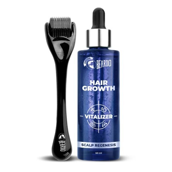 Beardo Hair Growth Vitalizer Serum 60 milligrams & Dermaroller For Men 0.5 mm| Biotin| Redensyl For Stem Cell Activation| Caffeine Product For DHT Blocking | Non-Sticky, Non-Oily & Non-Greasy – Fast Shipping to USA & Canada