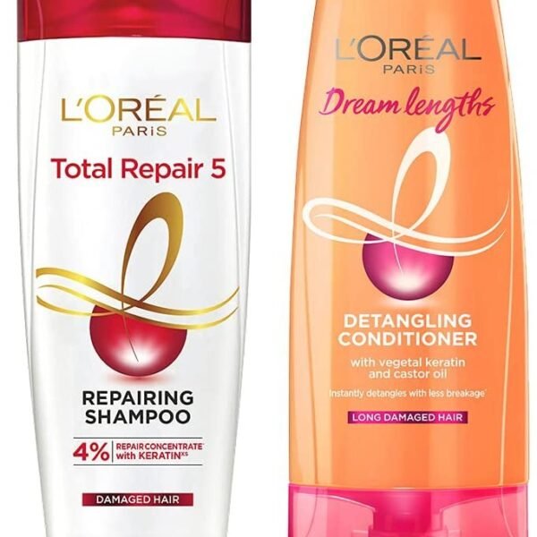 L’Oreal Paris Total Repair 5 Repairing Shampoo with Keratin XS, 192.5ml & L’Oreal Paris Dream Lengths Conditioner, 192.5 ml – Fast Shipping to USA & Canada