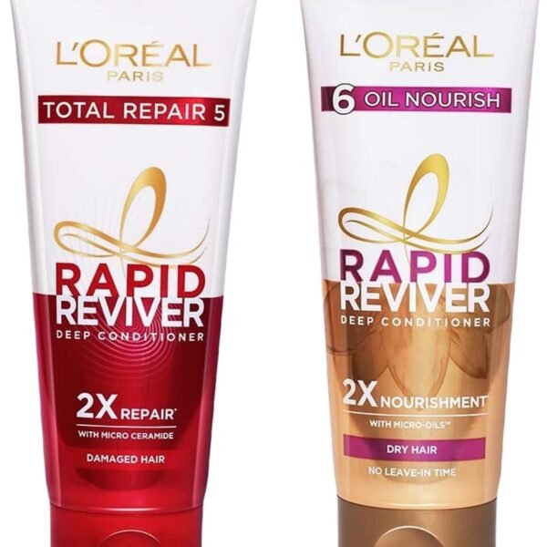 L’Oreal Paris Rapid Reviver Total Repair 5 Deep Conditioner, 180ml & L’Oreal Paris Rapid Reviver 6 Oil Nourish Deep Conditioner, 180ml – Fast Shipping to USA & Canada