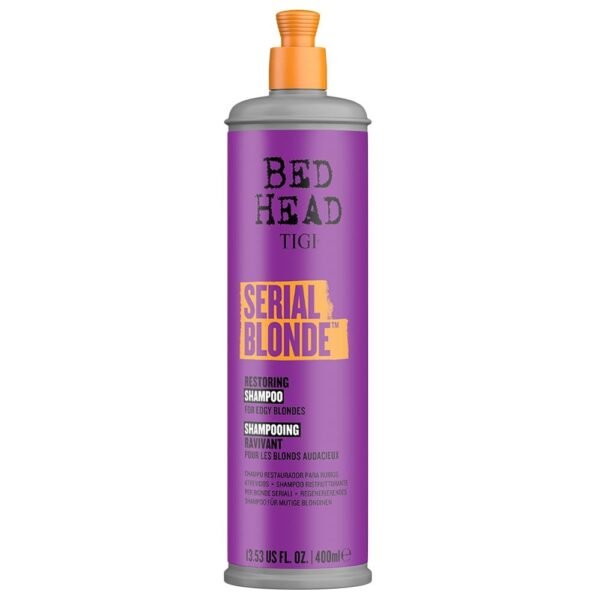Bed Head TIGI Serial Blonde Restoring Shampoo for Damaged Hair, Colour Enhancing & Protection Shampoo with Keratin for Blonde Coloured Hair, Restores & Revives, UV Protection, Deep Cleanses & Moisturizes Hair, Exotic Tropical Fragrance, 400ml – Fast Shipping to USA & Canada
