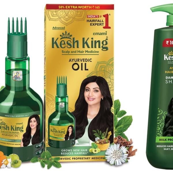 Kesh King Ayurvedic Anti Hairfall Hair Oil- 300 ml & Emami Kesh King Damage Repair Shampoo- 600 ml – Fast Shipping to USA & Canada