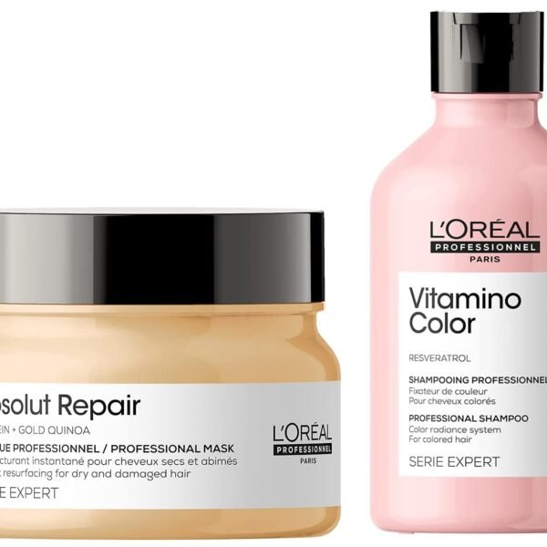 L’OREAL PROFESSIONNEL PARIS Serie Expert Vitamino Shampoo Protects Hair Colour From Fading,Adds Shine With Antioxidant Properties&Serie Expert Absolut Repair Masque 250 Gm,For Dry&Damaged Hair – Fast Shipping to USA & Canada