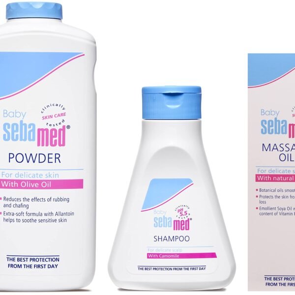 Sebamed Baby Powder, 200g & Baby (Children) Shampoo 150ml & Baby Massage Oil, 150ml – Fast Shipping to USA & Canada