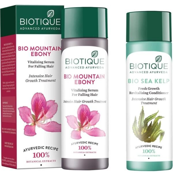 Biotique Bio Sea Kelp Fresh Growth Revitalizing Conditioner, 120ml And Biotique Bio Mountain Ebony Vitalizing Serum For Falling Hair Intensive Hair Growth Treatment, 120ML – Fast Shipping to USA & Canada