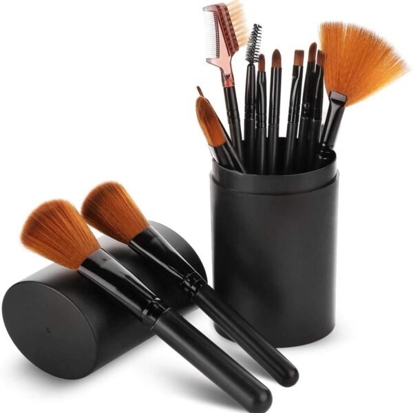 FOCALLURE PROFESSIONALS FACE MAKEUP BRUSHES SET OF 12 WITH BARREL BOX FOR GIRLS/WOMEN (BLACK) – Fast Shipping to USA & Canada