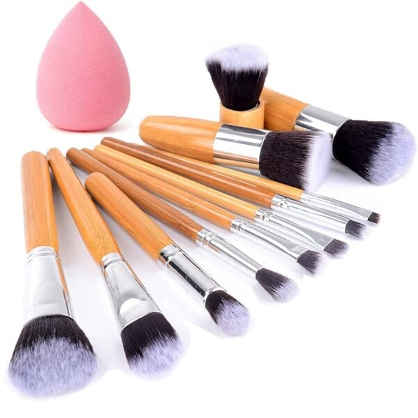HUDA GIRL Beauty Professional Makeup Brushes with Blender Puff 11 Pieces Natural Bamboo Handle, Travel Case – Wooden – Fast Shipping to USA & Canada