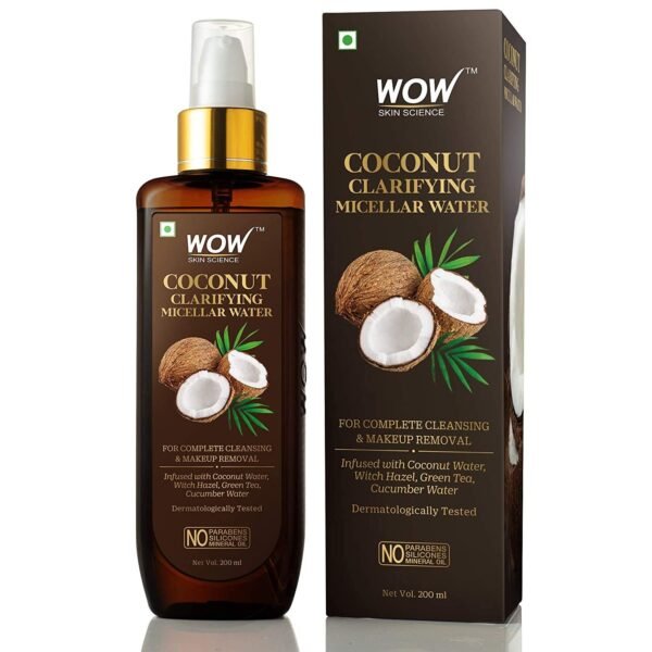 WOW Skin Science Coconut Clarifying Micellar Water for Complete Cleansing & Makeup Removal – For All Skin Types – No Parabens, Silicones & Mineral Oil, 200 ml – Fast Shipping to USA & Canada