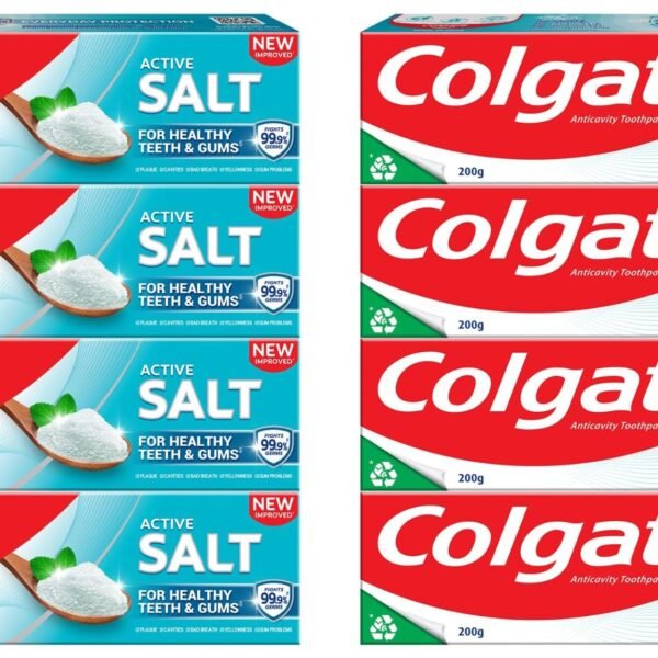 Colgate Active Salt Buy 3+1 Free, 800g (200g x 4, Pack of 8) Toothpaste, Daily Germ Protection, Toothpaste with Salt & Mint, Healthy Gums & Teeth, Fights Germs & Eliminates Bad Breath – Fast Shipping to USA & Canada
