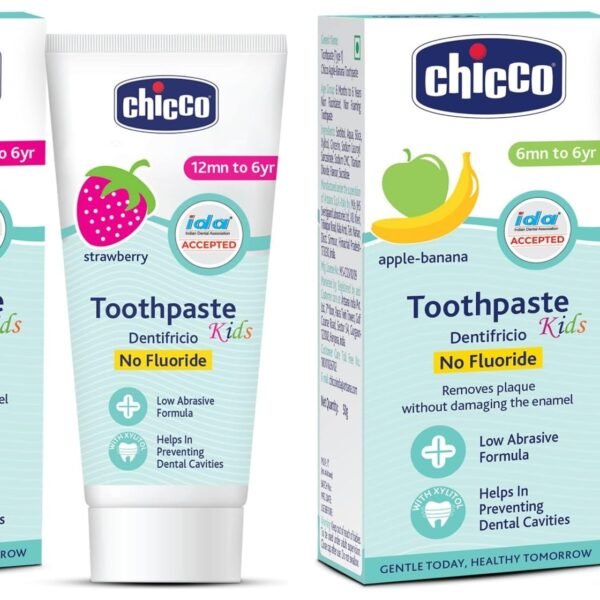 Chicco Toothpaste, Strawberry Flavour for 1Y to 6Y Bab (50g)&Chicco Toothpaste, Applebanana Flavour for 6m to 6Y Baby, Fluoride-Free, Preservative-Free,Cavity Protection (50 Millilitre) – Fast Shipping to USA & Canada