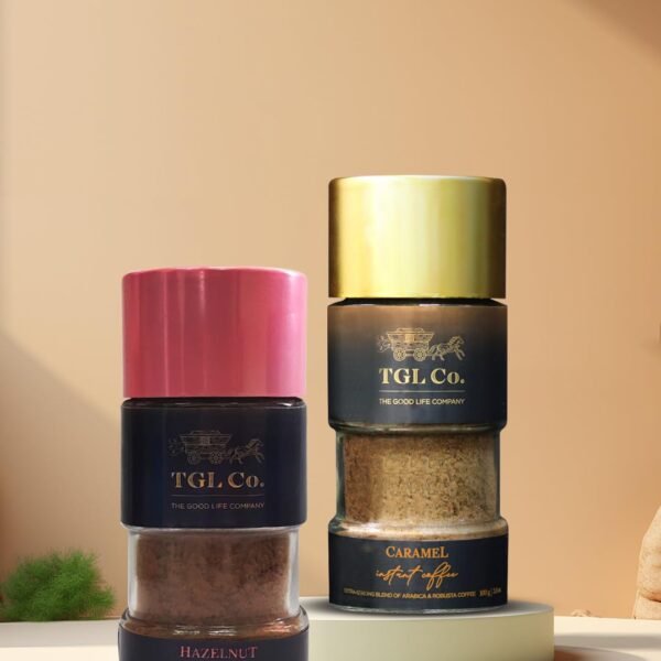 TGL Co. The Good Life Company Hazelnut & Caramel Instant Flavoured Coffee Granule Bottle 100Gms Each – Fast Shipping to USA & Canada