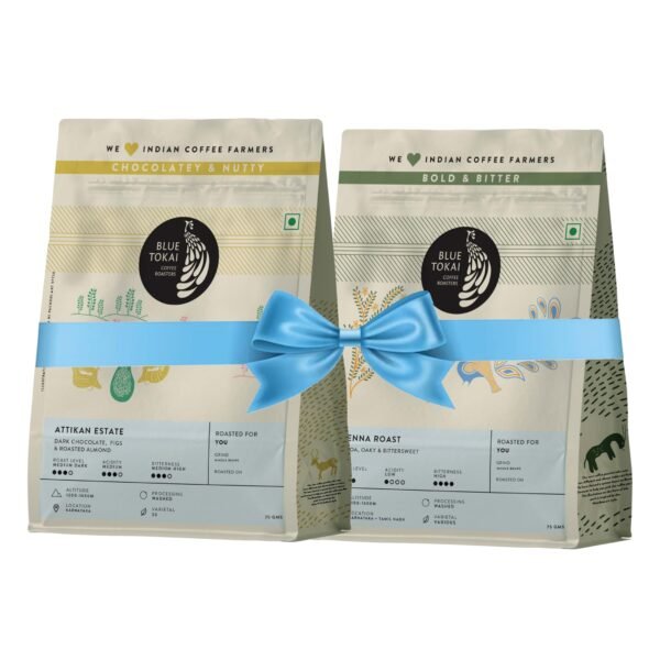 Blue Tokai Coffee Roasters Sampler Pack Attikan Estate -Medium Dark Roast & Vienna-Dark Roast | Whole Bean | 100% Arabica Ground Coffee (75gm each, Pack of 2) – Fast Shipping to USA & Canada