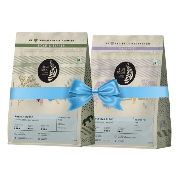 Blue Tokai Coffee Roasters Sampler Pack French Roast-Dark Roast & Silver Oak Caf? Blend – Medium Roast | Whole Bean | 100% Arabica Ground Coffee (75gm each, Pack of 2) – Fast Shipping to USA & Canada