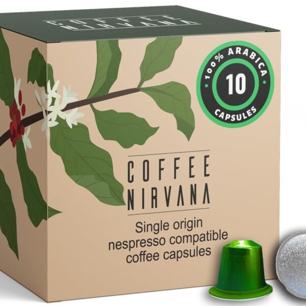 Coffee Nirvana,100% Arabica, Box of 10 Pods,Nespresso Compatible Aluminum Capsules, 55 grams – Fast Shipping to USA & Canada
