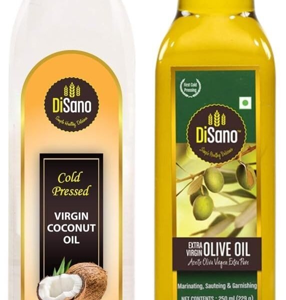 DiSano Extra Virgin Olive Oil, First Cold Pressed, 250ml + Disano Cold Press Virgin Coconut Oil Bottle, 250 ml – Fast Shipping to USA & Canada