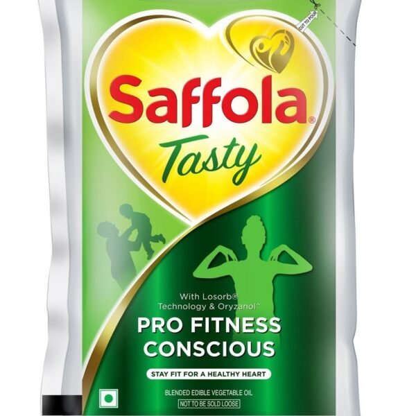 Saffola Tasty Refined Oil|Blend of Corn Oil & Rice Bran Oil|Cooking oil|Pro Fitness Conscious Edible Oil 1 Litre Pouch – Fast Shipping to USA & Canada