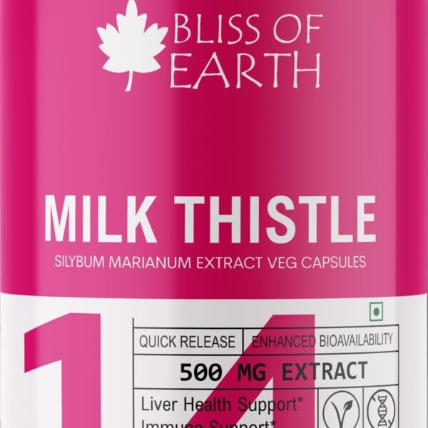Bliss of Earth Milk Thistle Capsules, Liver Support Supplement, 60 Count, 500mg Pure Extract Per Serving, Organic, Non-GMO, 500mg, Vegan-Friendly – Fast Shipping to USA