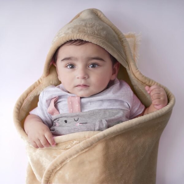 haus & kinder Fur Hooded Blanket for Newborns (0-6 Months), 450 GSM, Super Soft & Warm, 75×75 cm, Brown 1 Piece – Fast Shipping to USA & Canada