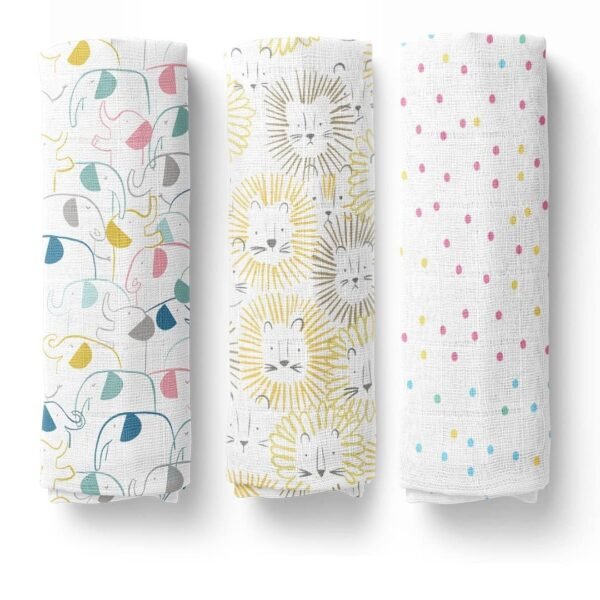 haus & kinder Jungle Collection 100% Cotton Muslin Swaddle Wrap for New Born Baby Boy & Girl,Soft Swaddle Cloth for New Born Swaddle,Size 100cm x 100cm,Pack of 2(Elephant-Ditsy Floral),Assorted – Fast Shipping to USA & Canada