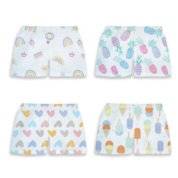 1ST STEP 100% Soft Muslin Cotton Baby Shorts – Pack of 4 – Fast Shipping to USA & Canada