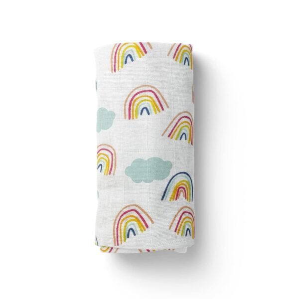 MOM’S HOME Organic Cotton Baby Muslin Swaddle | Rainbow | 100X100 cm | 0-12 Months | Multicolor – Fast Shipping to USA & Canada
