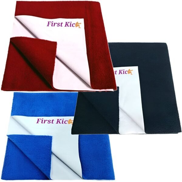 First Kick Waterproof Baby Bed Protector/Mattress Cotton Dry Sheet (70cm X 50 cm) for Born Baby/Kids- (Maroon,Navy,Royal) – Small, Pack of 3 – Fast Shipping to USA & Canada