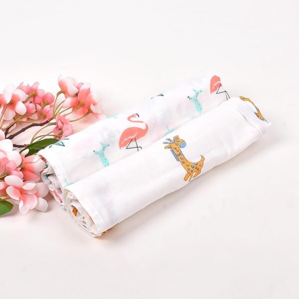 Mom’s Home Organic Cotton Baby Muslin Cloth Swaddle – 0-12 Months – (100×100 cm),Pack of 2 – Flamingo & Giraffe – Fast Shipping to USA & Canada