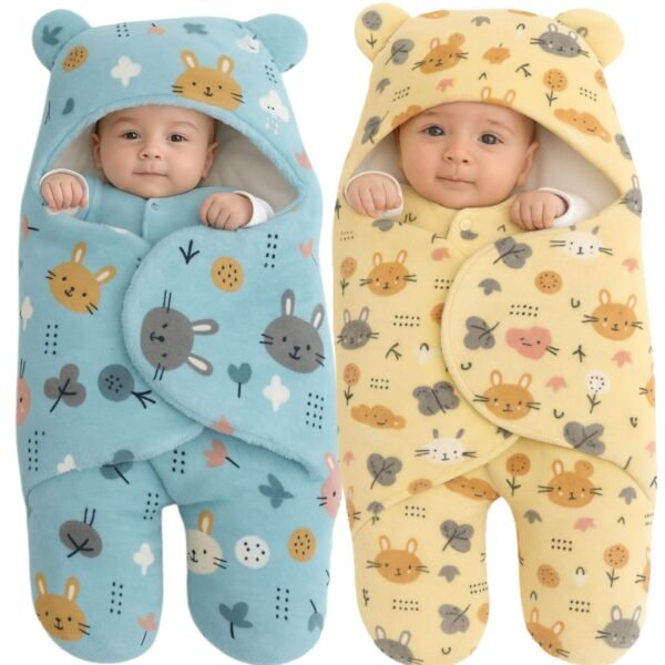 First Kick Baby Blanket New Born Pack of Hooded Printed Swaddle Wrapper Bag Pack of 2 Pcs, 0-6 Months, L 70 cm x B 70 cm – Fast Shipping to USA & Canada