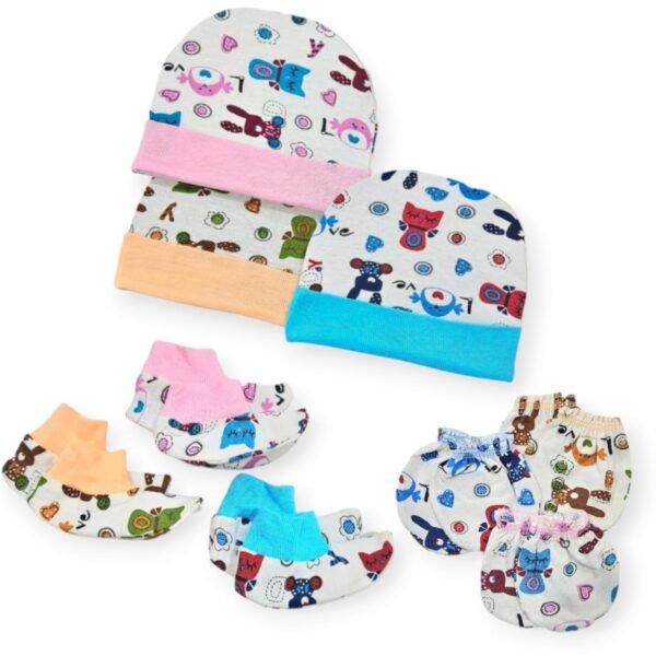 First Kick Baby Mitten Booty Cap Set – 3 Sets (Multicolour) Mittens for New Born Baby 0-6 Months | Useful | Pocket-Friendly | Soft New Born Cotton – Fast Shipping to USA & Canada