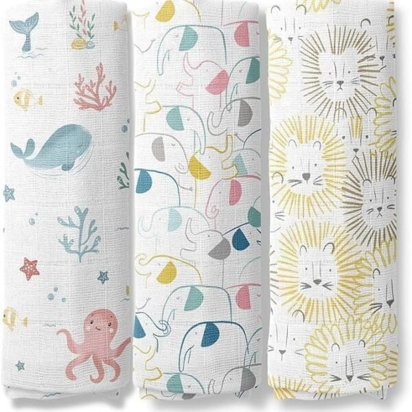 haus & kinder 100% Cotton Muslin Swaddle for New Born Baby-Soft Swaddle Cloth for New Born | Baby Swaddle Wrap for New Born | Multicolor Muslin Cloth for New Born Baby Set, Swaddlers, 3 Pc, 100x100cm – Fast Shipping to USA & Canada