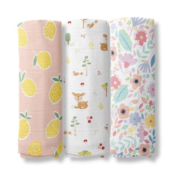 haus & kinder Muslin Swaddles for Newborn ? Pack of 3 | 100% Cotton Baby Swaddle Blankets | Soft, Breathable, Lightweight, Organic | 100×100 cm ? Citrus Groove Collection (Multicolor) – Fast Shipping to USA & Canada