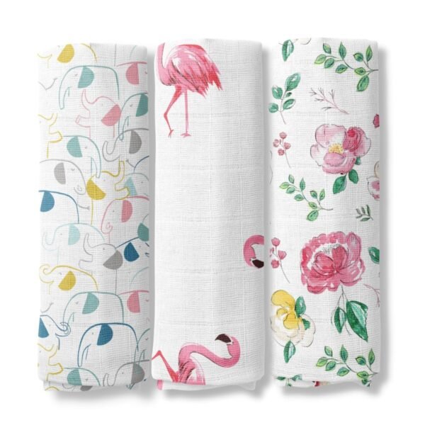 MOM’S HOME Jhabla and Nappy for New Born Baby | Organic Cotton Muslin Jabla and Langot Set | Bloom, Blossom & Flamingo | Pack of 3 – Fast Shipping to USA & Canada