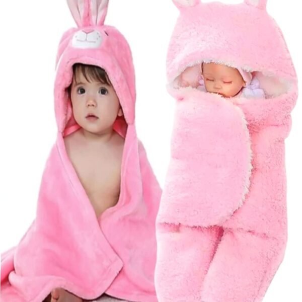 First Kick Baby Blankets New Born Combo Pack of Hooded Wrapper Durable Fleece Polyester Sleeping Bag and Baby Bath Towel for 0-6 Months Baby Boys and Baby Girls Pack of 2 Pink Rabbit, Unicorn Pink – Fast Shipping to USA & Canada