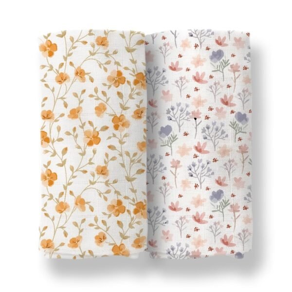 MOM’S HOME Organic Cotton Baby Muslin Swaddle Wrap Set | Bloom Blossom Print | 100×100 cm | 0-12 Months | Pack of 2 | Soft & Breathable Baby Blanket – Fast Shipping to USA & Canada