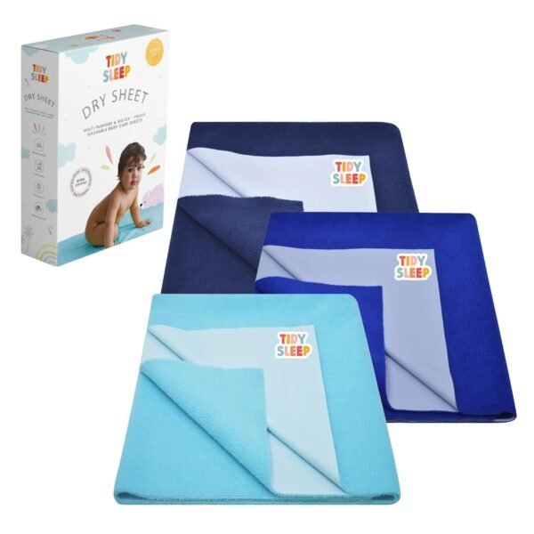 Tidy Sleep Instadry Anti-Piling Fleece Extra Absorbent Quick Dry Sheet for New Born Babies, Cotton Bed Protector Mattress Pack of 3 RBlue-NBlue-SBlue Medium (100×70) cm – Fast Shipping to USA & Canada