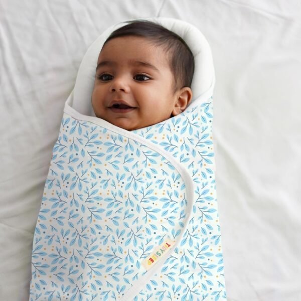 TIDY SLEEP Baby Swaddle Wrappper Adjustable for Newborn || 100% Cotton Soft || Newborn Blanket for 0-3 Months (Blue Leaf) – Fast Shipping to USA & Canada